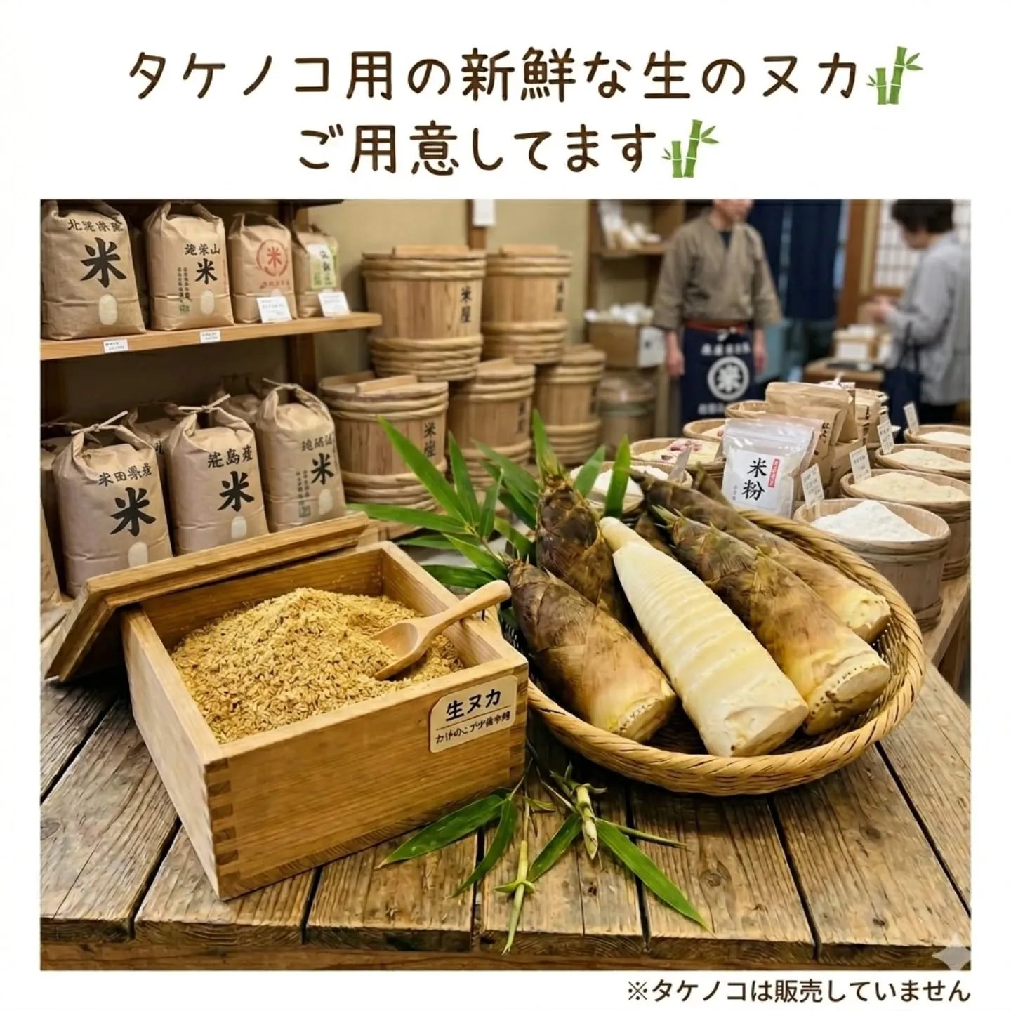 暖かくなってきて 2026/04/11 暖かくなってきて タケノコの季節ですね! アク抜きに欠かせない 生のヌカ、いつでもご用意しております🙂↕️ お店でお声がけ下さいね😆 必要な数量だけお出しできます👆️ #お米の服部 #ぬか #昭和区 #タケノコ #アク抜き